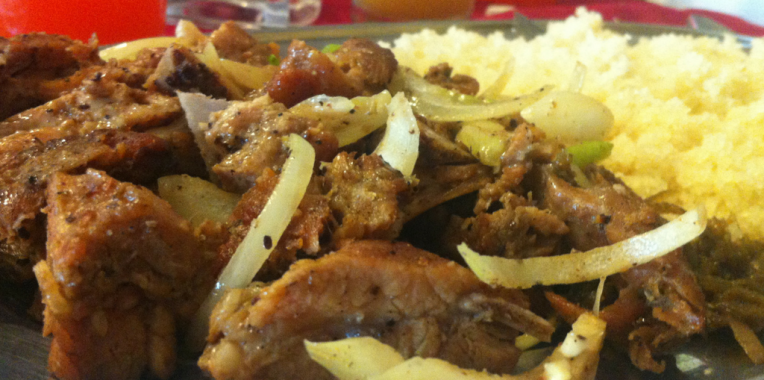 Eh bien ! Le Choukouya de Porc accompagné d’Attiéké avec son petit piment vert à l’oignon émincé m’a laissé sans voix : « Trop bon ! »