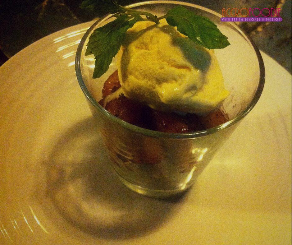 Vous avez le choix entre l’ananas, la pomme ou la mangue. Pour nous, c’est ananas. Servi dans un verre avec au fond une couche de biscuit concassé, l’ananas est découpé en petits morceaux avec au sommet une glace parfum vanille. Super bon! Encore un Must-try. Prix du Crumble : 5000 francs