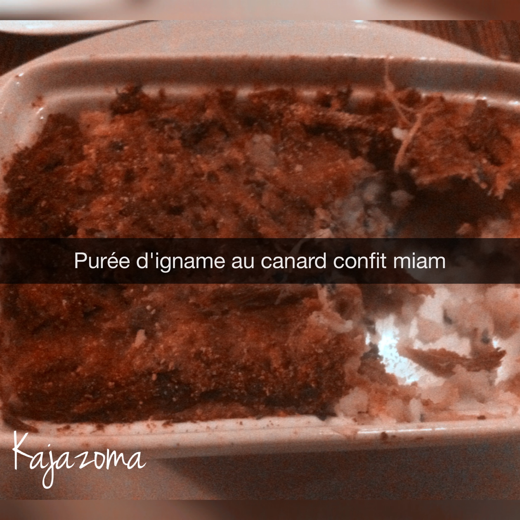 A la vue de mon « Gratin d’igname au confit de canard », je me suis dit intérieurement (ça là, ça ne me rassasieras pas) mais détrompez-vous. Dès ma première bouchée, j’ai su, oui j’ai su que j’allais enfin en avoir pour mon appétit.