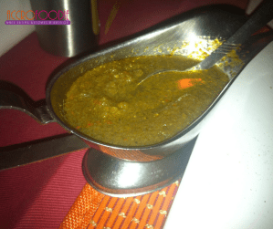 Assisse au première loge je n’ai d’yeux que pour ce spectacle qui s’offre à moi. Le serveur d’une main habile, déshabille la viande qui se glisse dans l’assiette et comme pour lui donner un look d’enfer, il renverse le bouillon par-dessus. Ah la la! Tant d’admiration pour cette viande braisée qui attérrit sur ma langue. Wouaahh explosion immédiate. Le goût est exquis :la viande est tendre et bien assaisonnée , parfait mélange d’ail et de poivre et la petite sauce pour accompagner n’a pas son pareil! Chapeau au chef ! Trente minutes plus tard, sourire aux lèvres et ventre plein, je suis aux anges.