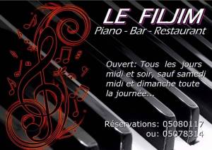 Le Filjim est géré par Mr Phillippe un connaisseur fin de la cuisine mais aussi un musicien dans l’âme (sympa et très ouvert). Le restau est situé à la montée de la côte au plateau après la radio Nostalgie. Vous apprécierez cet endroit pour son calme, la musique et la bouffe.