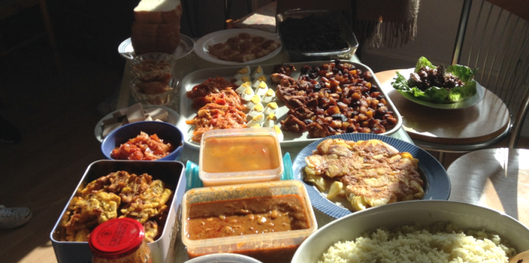 Du Vietnam, nous avons fait une halte au Kazakhstan, oú nous avons eu droit aux pommes de terre aux œufs au four, puis en Inde avec le Daal et du poulet au curry; merci à Alida et Rhéa pour ces délices! Le poulet de Rhéa m’a rendu nostalgique de mon séjour en Inde, que de bons souvenirs de ce pays.