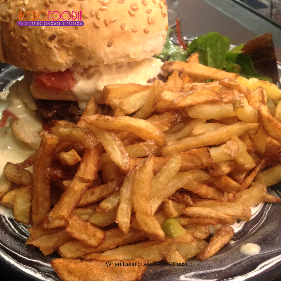 Ouvert depuis 1 an, ce restau-bar a su charmé ce quartier et peut accueillir plus de 60 personnes environ. Nous étions une dizaine d’amies à y aller. Dès notre arrivée, il y avait du monde à l’intérieur un jeudi soir (tchip) . Nous décidions de nous asseoir au milieu pour être sûr de rester ensemble et profiter de l’ambiance. Pourquoi le milieu? Pour être à proximité des jeux (babyfoot, jeux vidéo) du Bar et aussi de la cuisine (c’est un choix stratégique). Le Cadre spacieux, sobre et calme, est parfait pour terminer une journée de dure labeur.
