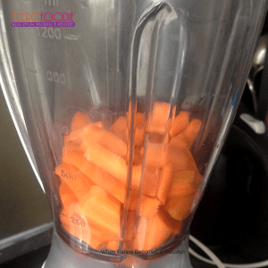 Dans un mixeur, mettre vos carottes préalablement lavées et pelées puis le lait, le yaourt, le sucre.