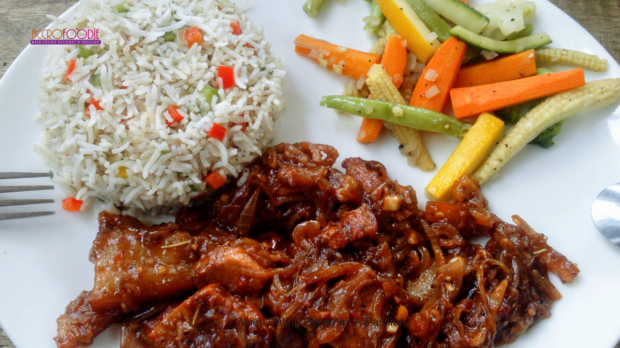 - Le grilled pork chops : un plat de riz aux légumes accompagné de tranches de porcs oignons caramelisés 😍.