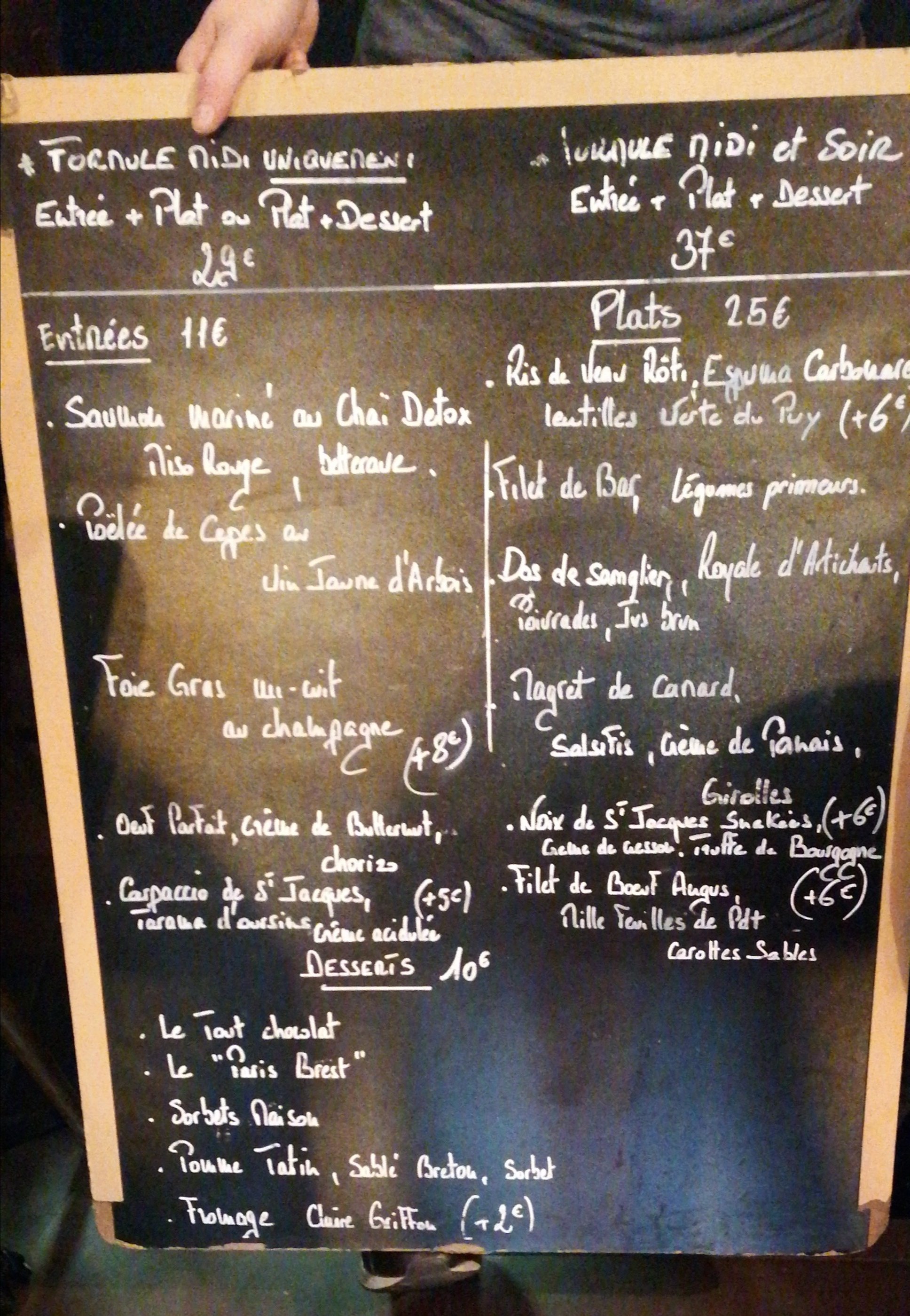 Vous avez les formules : entrée, plat/plat, dessert: 29€ ou entrée, plat, dessert: 37€.
