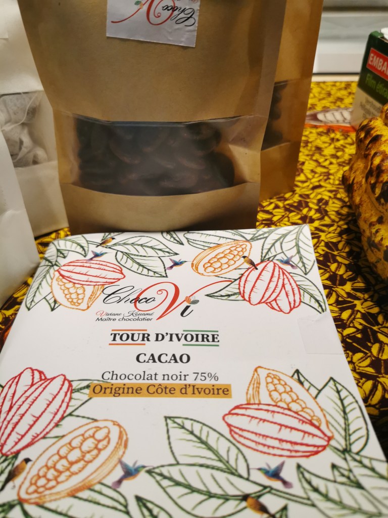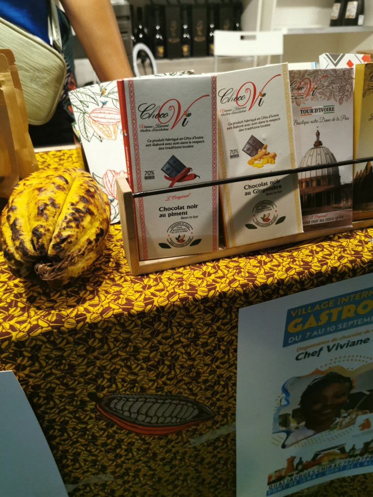 Jeune entrepreneure ivoirienne, Viviane est passionnée par la filière agricole notamment le cacao. Elle compte à son actif plusieurs prix d’excellence notamment le prix du gourmet d’or et détient le sacre de Maître chocolatier. PS : la seule femme Ivoirienne maître chocolatier 🙂 c’est important de le souligner. J’ai été très ravie de rencontrer Viviane lors du festival gastronomique qui s’est tenu du 7-10 sep à Paris organisé par le Village International de la gastronomique. Viviane est la fondatrice de la marque @ChocoVi spécialisée dans la transformation du Cacao en chocolat et en produits dérivés.
