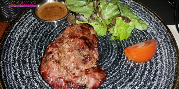 On décide de prendre une entrecôte de bœuf de 300 g accompagnée de frite et de la salade (pour faire l’équilibre), #somiam.